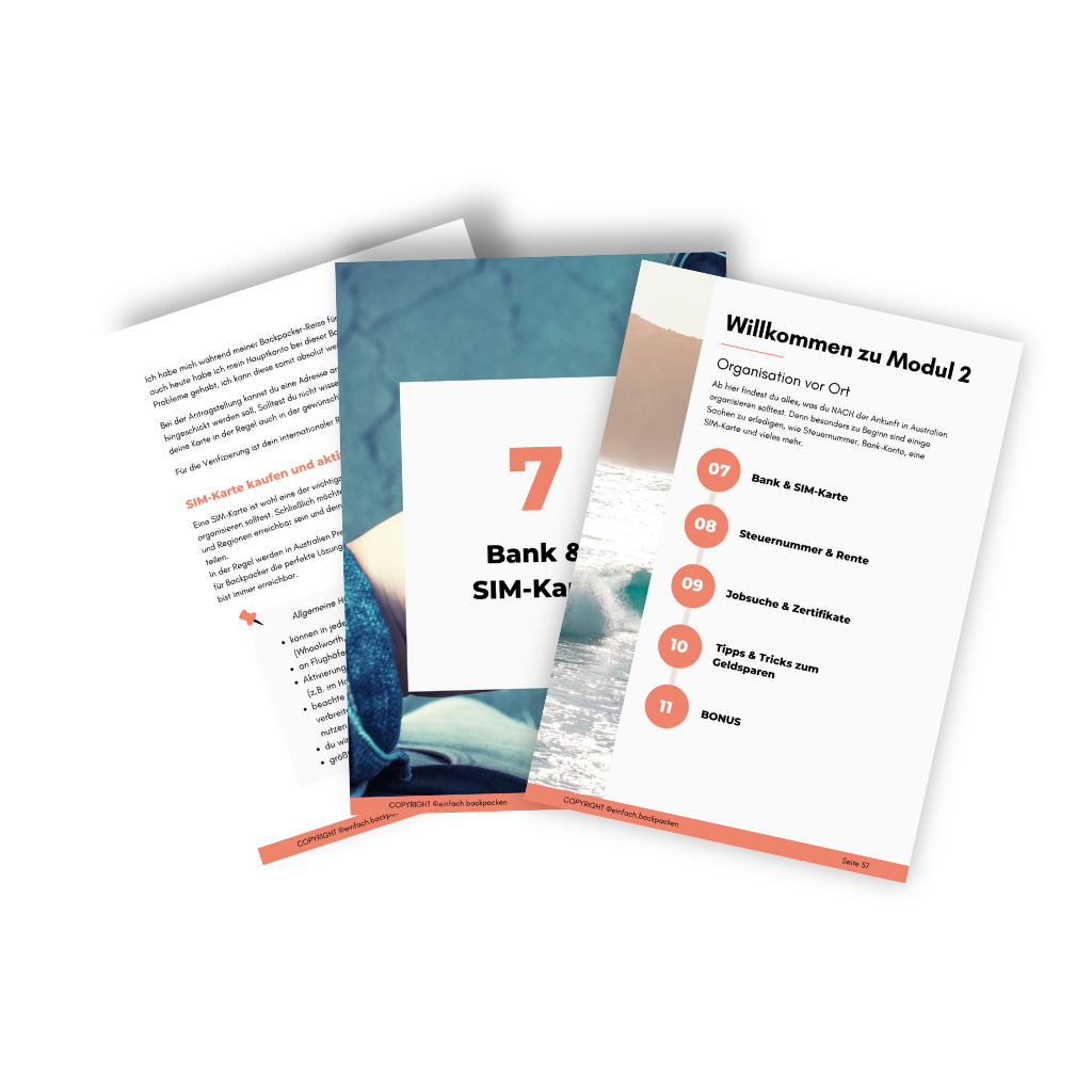 ➯ Bank-Konto, SIM Karte, Steuernummer, Rente, Vorbereitung auf den ersten Job und vieles mehr werden deinen Start in Australien deutlich erleichtern.